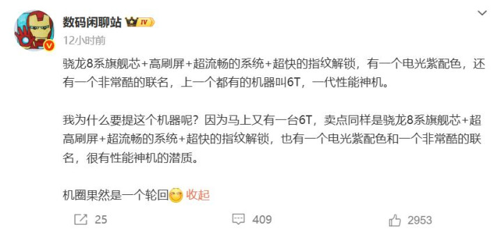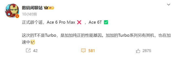 经过博主数码闲聊站正式,新出的这款骁龙8Gen 5手机是一加ace 6T,另外后面还会有搭载骁龙8s Gen 4处理器的Turbo手机,估计会独立一个Turbo系列去打千元市场。