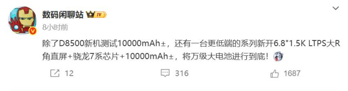 荣耀到明年会发布10000mAh大电池新机,而且还不止一款,此前给大家盘点过荣耀power 2会上10000mAh,现在爆料了x系列的千元机也会用10000mAh,搭载骁龙7系列芯片,并且会采用一块6.8英寸1.5k大R角直屏,预算更没有那么高又追求万级大电池的话可以等等这款。