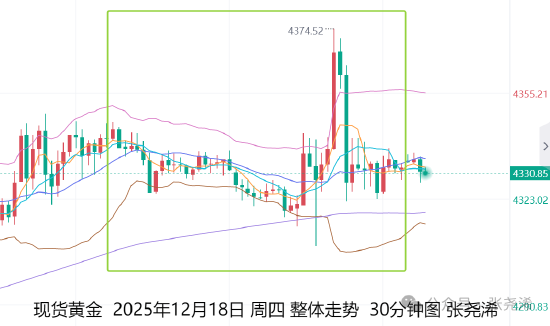 具体走势上,金价自亚市开于4337.99美元/盎司,亚欧盘时段先行维持震荡下移模式,延续至美盘时段,走势频率及幅度开始加大,先是走低22点半时段录得日内低点4308.66美元,之后又迅速反弹,连续回升,于次日0点时段录日内高点4374.14美元,之后又回落收复涨幅,并陷入4322-4340美元区间内持续盘整,最终收于4332.42美元,日振幅65.48美元,收跌5.57美元,跌幅0.13%。