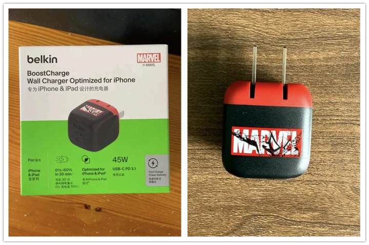 第二款是贝尔金的漫威限定款,官方数据同样是20分钟能充满iPhone17系列一半电量,目前最低能做到55元,官方质保也是2年。