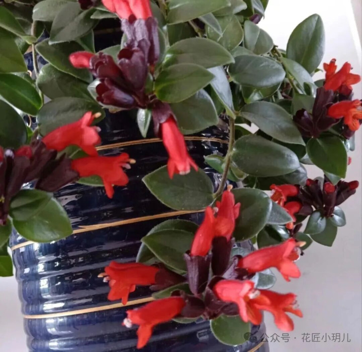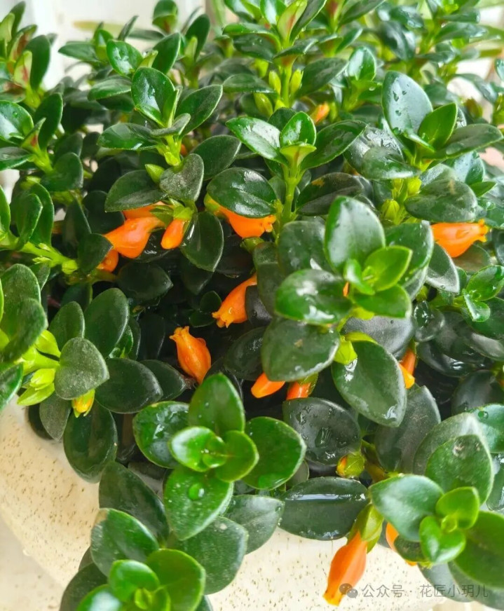 养护时保持空气湿润,盆土见干见湿即可,简单打理就能枝繁叶茂。把它悬挂在阳台窗边,开花时橙红点缀翠绿,灵动又可爱,给小空间增添不少生机趣味那。