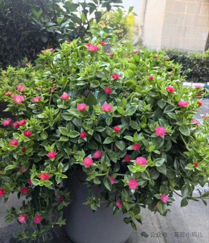 藤蔓自然垂吊时能达到半米长,随风轻摆显得格外灵动。每年春末到秋末,枝头会冒出星星点点的玫红色小花,绿叶配粉花,温柔又亮眼,让阳台瞬间有了生机。