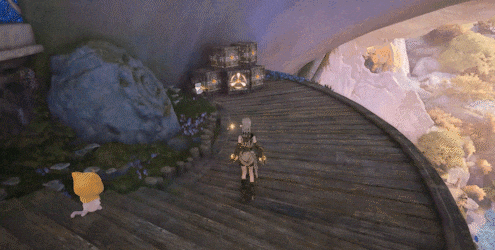 比如低重力地区——在这里,普通体态下的暖暖会漂浮到空中,这时暖暖除了弓箭以外,无法使用任何其他能力;要是想落地、用其他能力,就必须通过变大来切换暖暖的「重力」……这为跑图增加了些挑战,但反过来讲,这也为原本略显单调的跑图,补充了更多挑战乐趣。