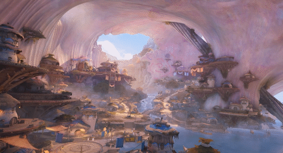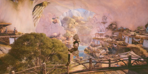 再比如,挂在悬崖上的蜗牛城,需要骑着蜗牛(菇菇人的主流载具),爬上巨矛、进入大壳,才能到达。