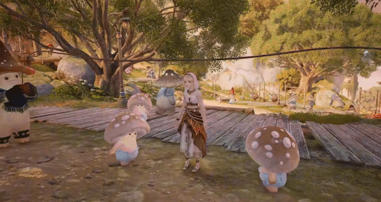 这里有休息区、广场、游乐区、集市等不同分区,包含不少轻量级、体验类的玩法……活脱脱像一个微缩的童话森林游乐场。