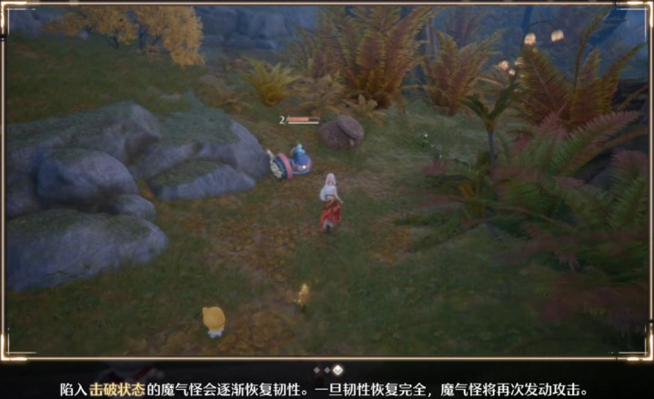 有些奇想星(探索收集的、用于解锁和养成能力的资源),需要暖暖变大后,冲锋撞破石堆、有裂缝的石墙,才能获得;一些跳跃台,比如有弹性的蘑菇顶,需要暖暖先变大踩上去,再变小,通过压力和弹性的组合作用,把自己弹上天;部分花草,在被变大后的暖暖咆哮后,会有不同反应,以提供解谜线索;