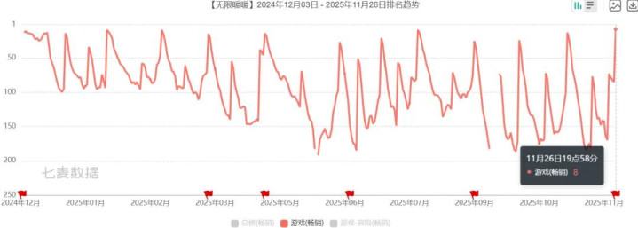 版本更新首日,游戏冲上了国区iOS游戏畅销榜Top 8,刷新了自公测以来的最高排名纪录,考虑到《无限暖暖》是多端游戏,还有来自PC、主机端的收入,其2.0版本的首日流水只会比我们看到的更高;