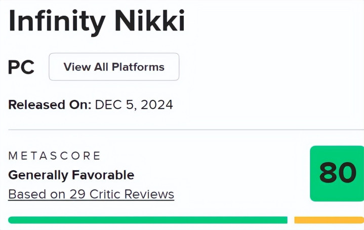 《无限暖暖》PC版在Metacritic上的媒体评测均分高达80(满分100),其中IGN给出了9分(满分10分)好评