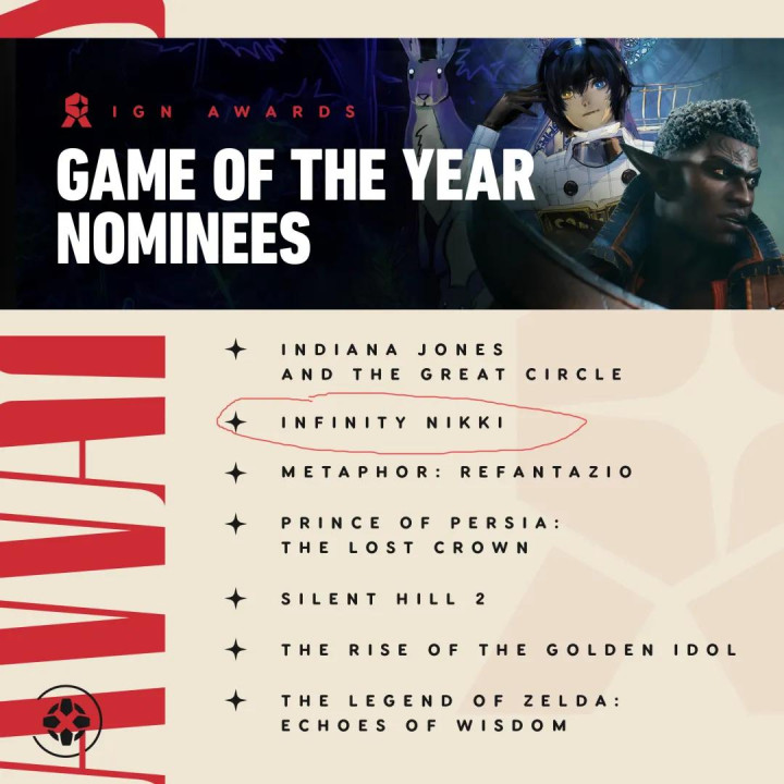 IGN将《无限暖暖》列入2024年度最佳游戏提名