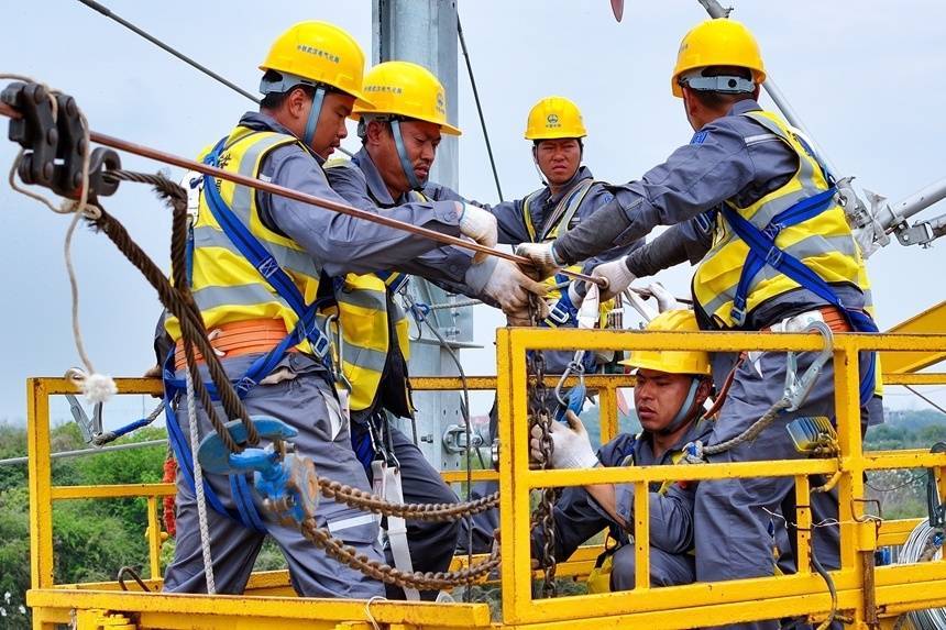 施工人员在架设现场作业。胡国林摄