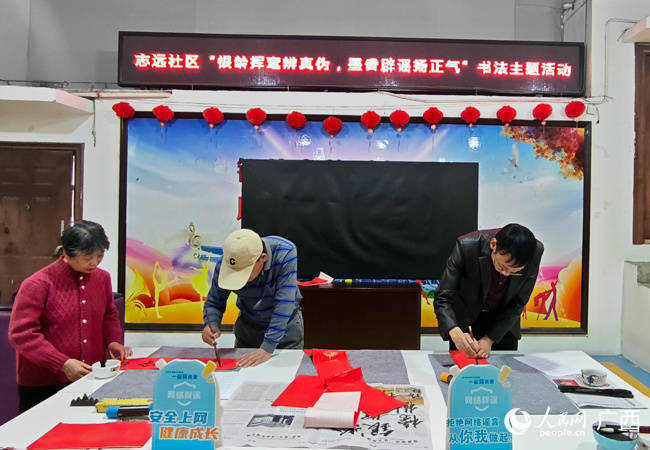 志愿者正在书写辟谣知识的对联。人民网记者 王勇摄