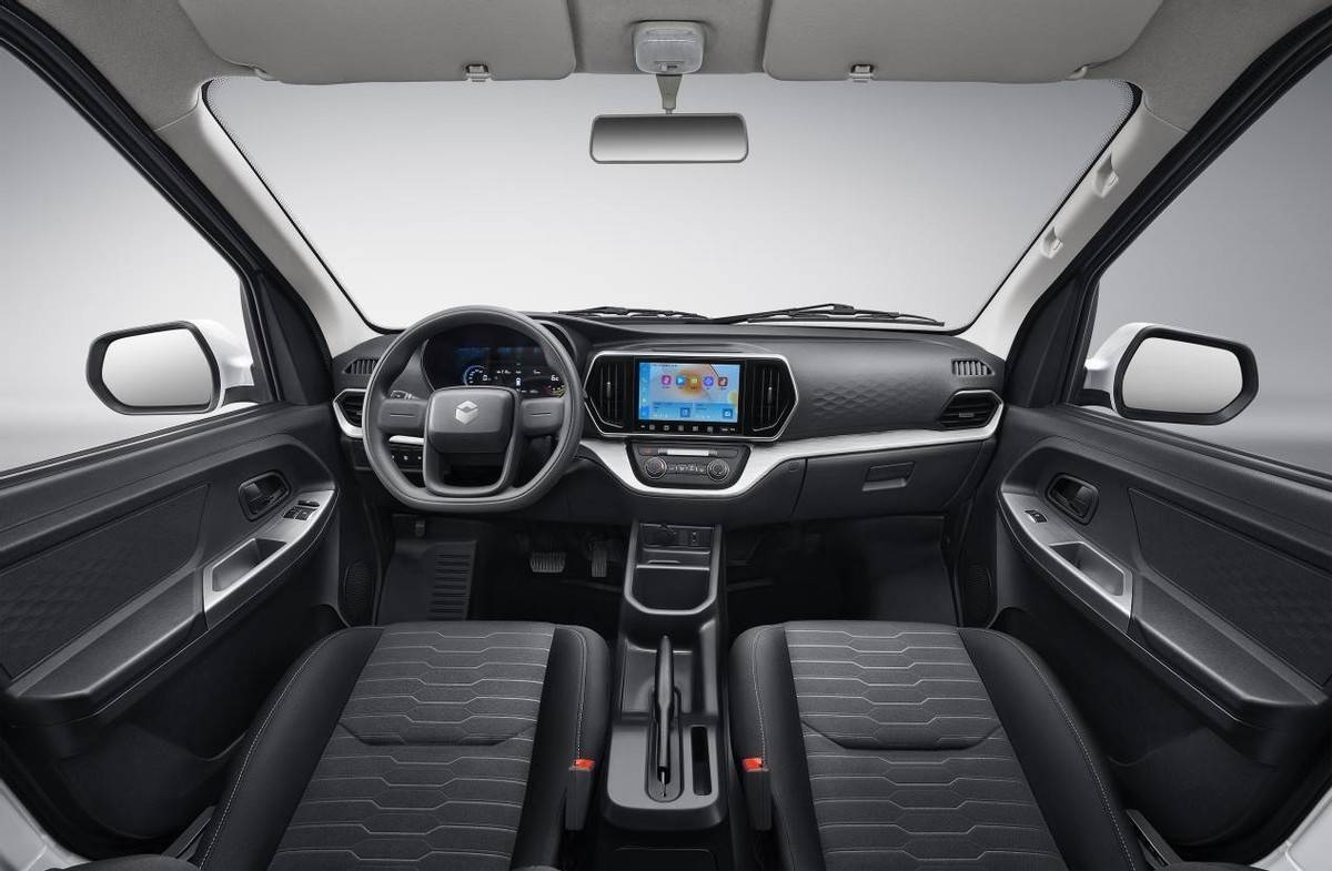 内饰采用乘用级环抱式座舱设计,搭配三幅多功能方向盘与怀挡布局,操作更顺手、空间更开阔。9 英寸多媒体中控屏是内饰核心亮点,支持手机互联、远程车控等功能,司机可通过手机 APP 远程查看电量、预约充电、开启空调,日常用车更便捷微博。座椅提供 2/5/6/7 座灵活布局,可快速在纯货用、客货两用模式间切换,既能满足建材、生鲜等大件货物运输,也能兼顾短途载客需求,真正实现一车多用。